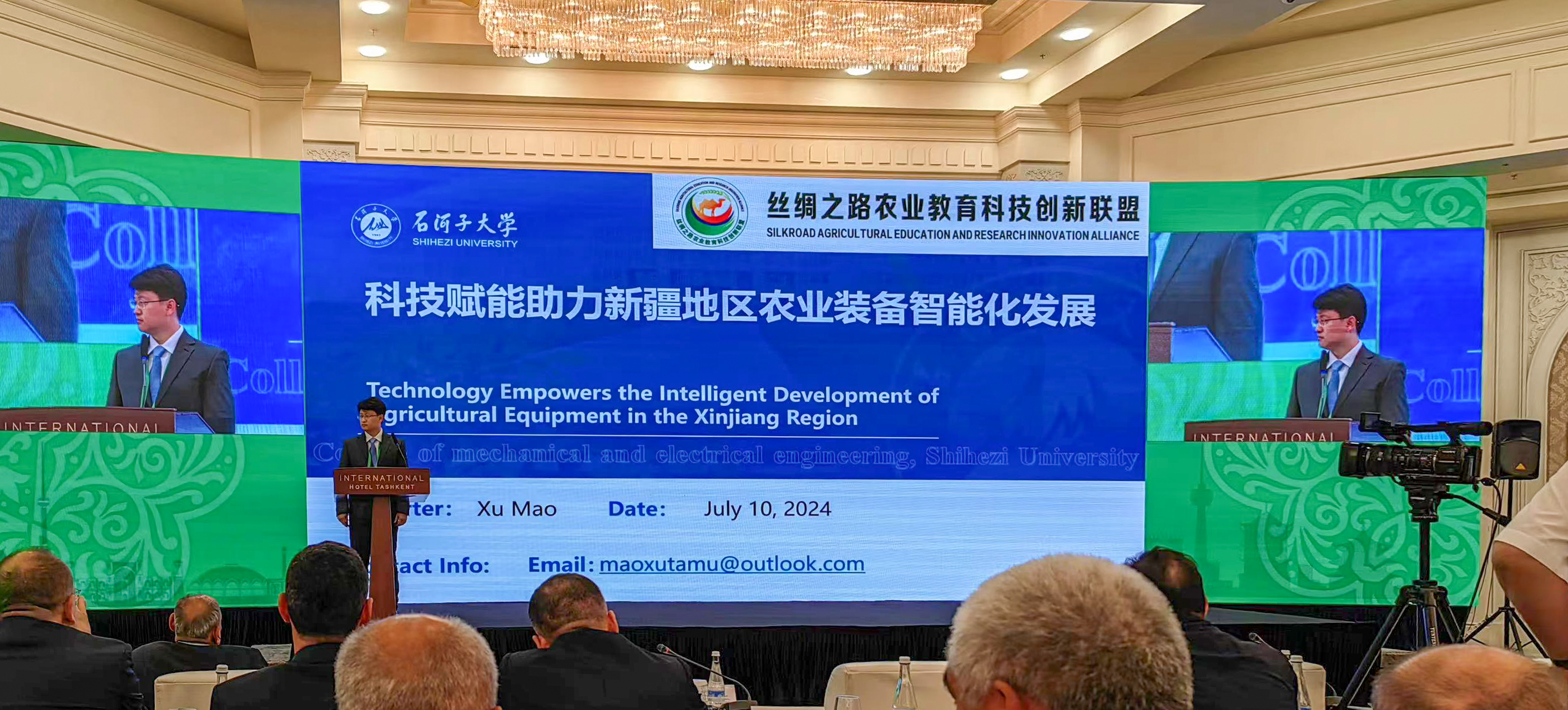 烏茲別克斯坦農(nóng)業(yè)部部長,高等教育、科學(xué)和創(chuàng)新部部長,生態(tài)黨中央委員會(huì)執(zhí)行委員會(huì)主席等政府官員出席會(huì)議并講話,中國駐烏茲別克大使館大使于駿到會(huì)致辭。年會(huì)論壇上,來自世界各地的39名代表進(jìn)行了發(fā)言,我校農(nóng)學(xué)院副院長劉立軍和機(jī)械電氣工程學(xué)院副院長毛旭分別在論壇上代表學(xué)校作了題為“石河子大學(xué)農(nóng)學(xué)院依托國際科技合作基地助力棉花科技創(chuàng)新”“科技賦能助力新疆地區(qū)農(nóng)業(yè)裝備智能化發(fā)展”的發(fā)言。