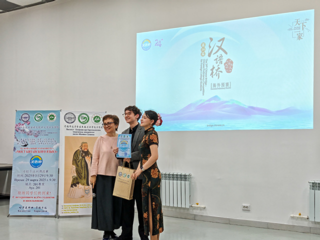 3月29日,我校孔子學院舉辦了2025年世界“漢語橋”大、中、小學生卡拉干達地區中文比賽,來自哈薩克斯坦卡拉干達地區40余名學生同臺競技。我校四位教師受邀擔任本次比賽評委。